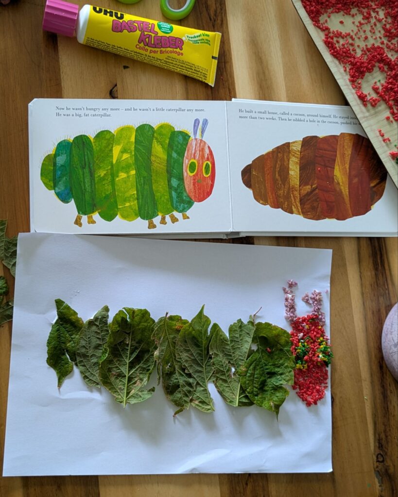 One thing my kids are obsessed with is picking up stuff on the ground when we’re outside and bringing it home: leaves, sticks, stones, flowers, sometimes even bugs. And, any time we bring something in from outside, we try to use it for something useful (except the bugs, of course), and change the feel of our activity for that day.