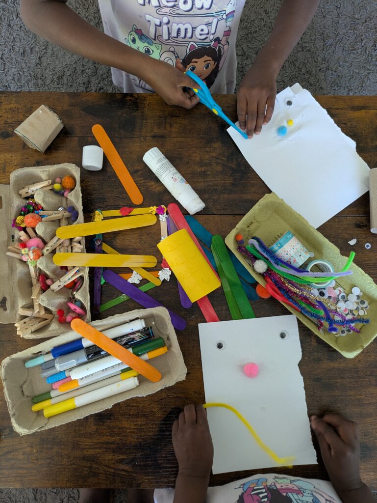 There’s a lot of space to work with. They can paint, draw, cut, and glue all on one surface because a paper plate feels like a blank canvas they’re not afraid of.