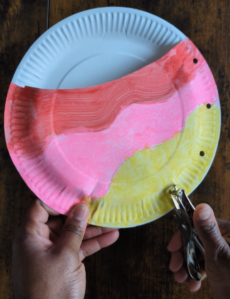Get your hole punch and punch evenly-spaced holes around the plate, starting from one top edge of the half-circle and working your way around to the other top edge.