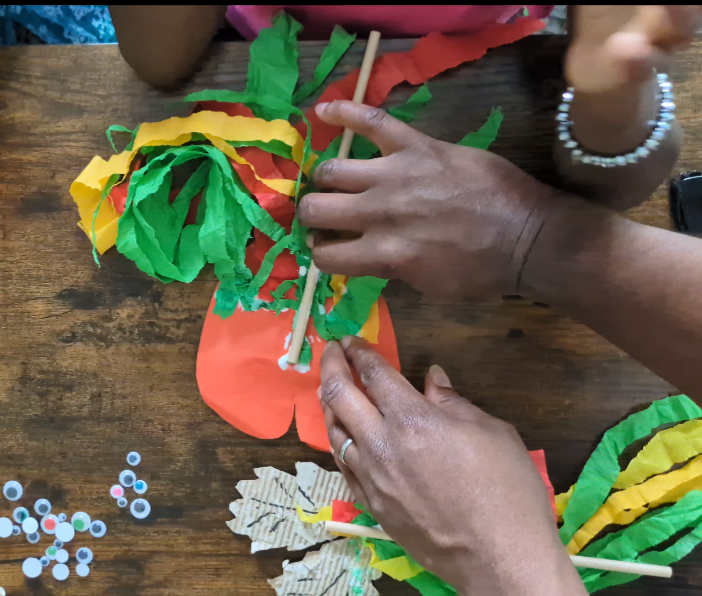 - Optionally, attach a paper straw to the back so your child can hold and wave it like a leaf streamer (this is the fun part).