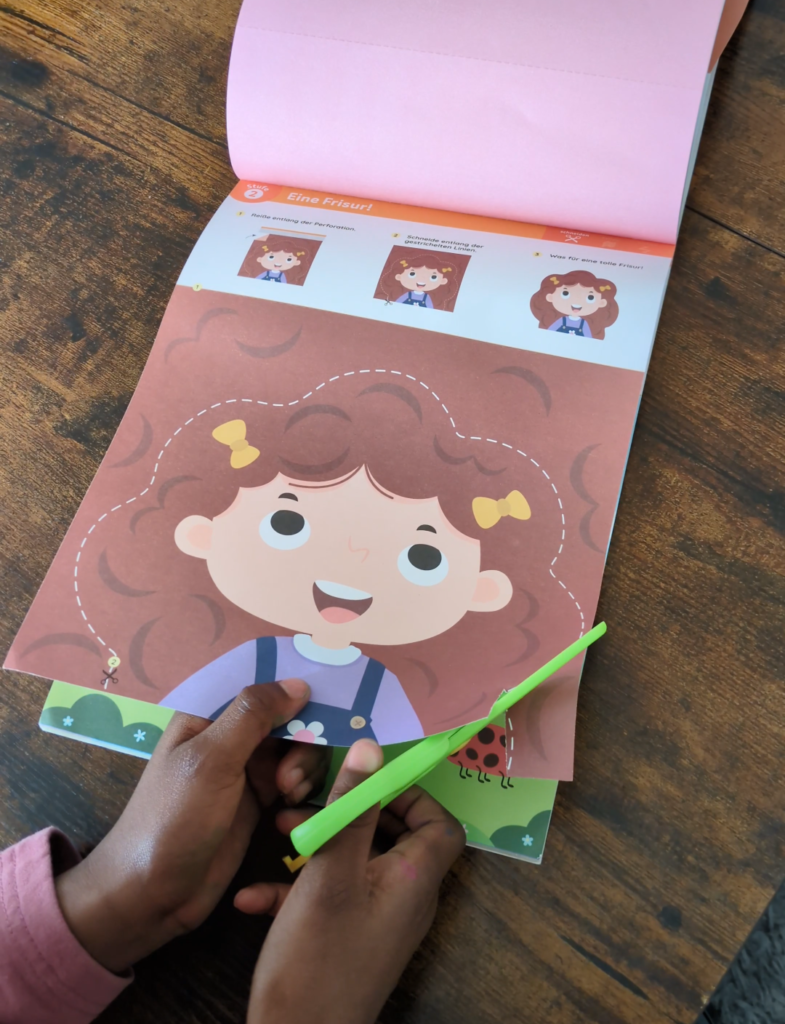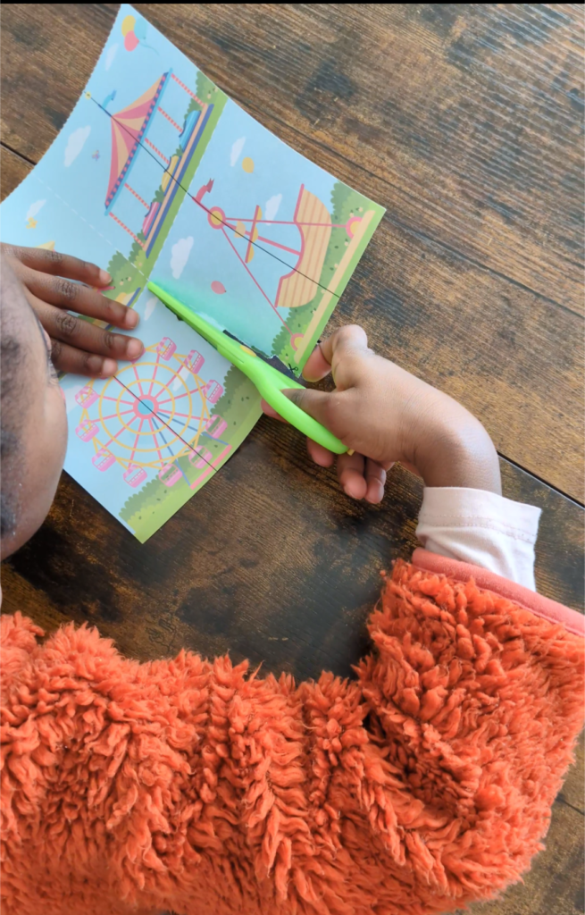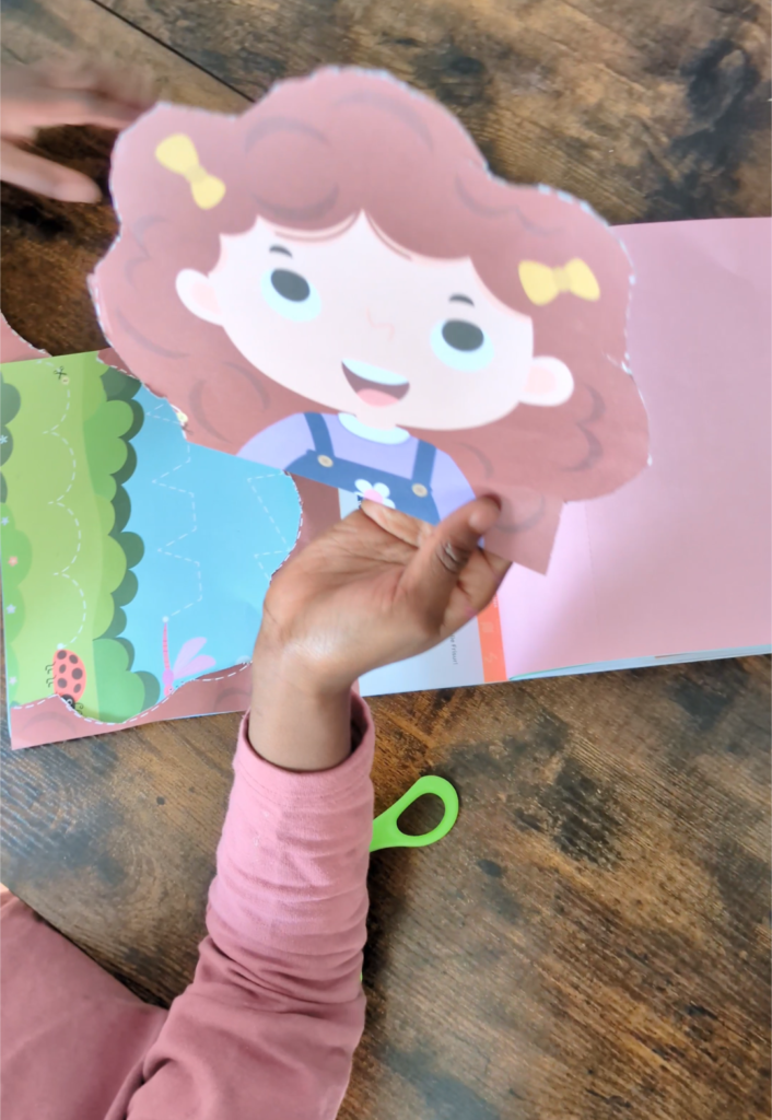 While we love printables, I’ve also noticed my kids sometimes enjoy structured activity books even more. So, recently we tried the Skillmatics Snip Snip cutting activity book, and it has actually been really helpful for practising scissor skills.