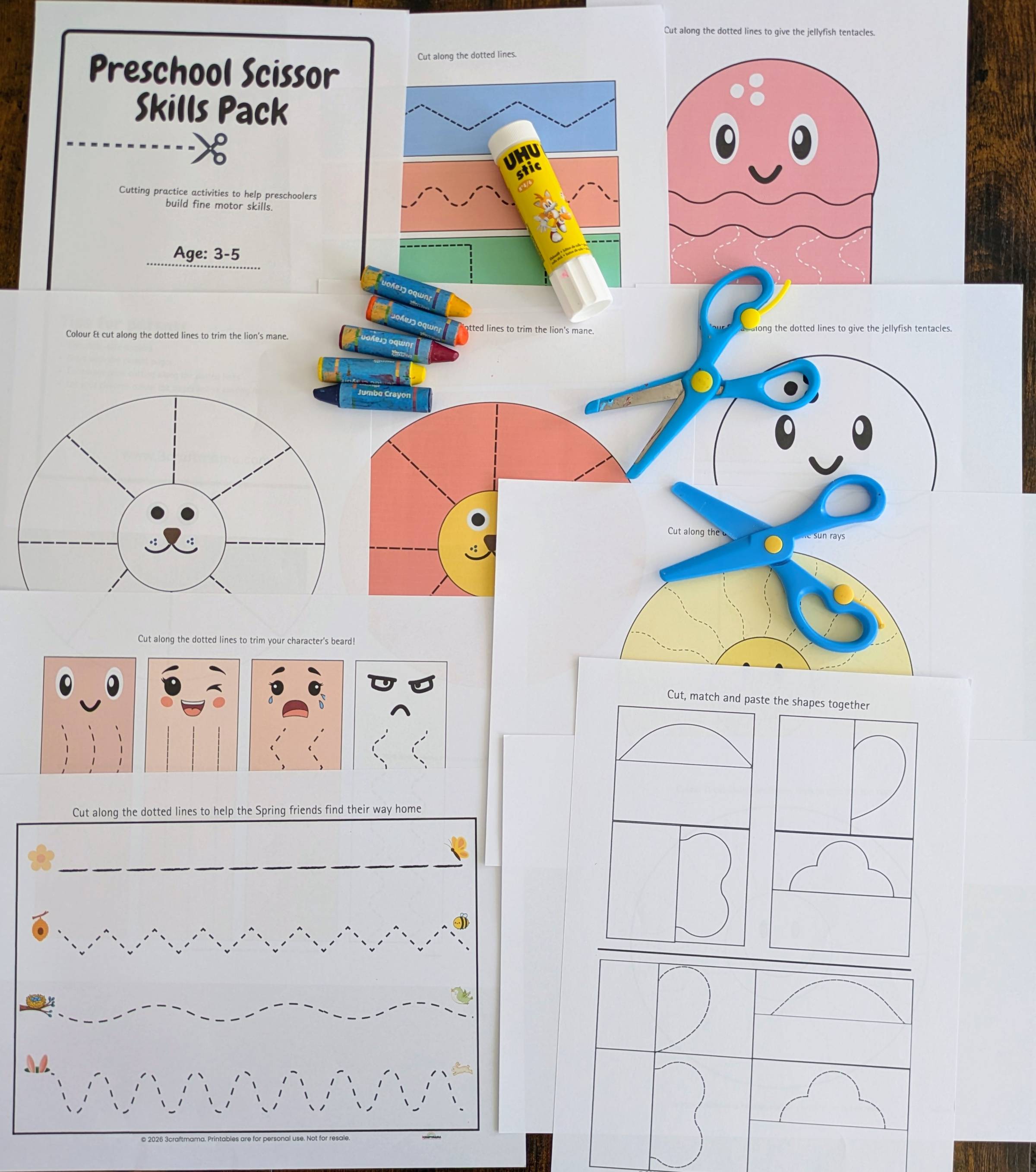 After learning more about fine motor development and preschool scissor skills, I realised that cutting practice is actually an important step in early learning, and using simple tools like: