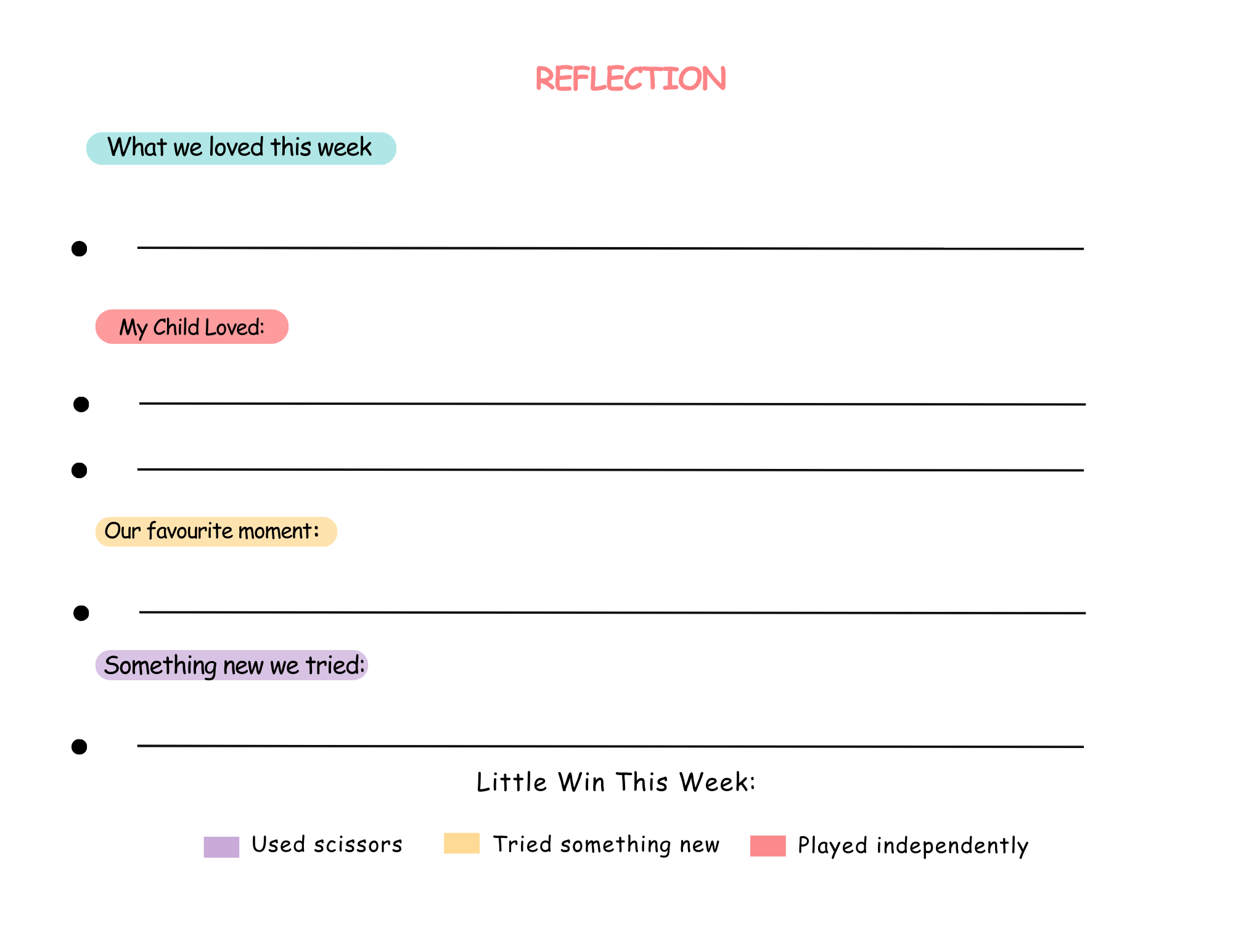 • One weekly reflection page