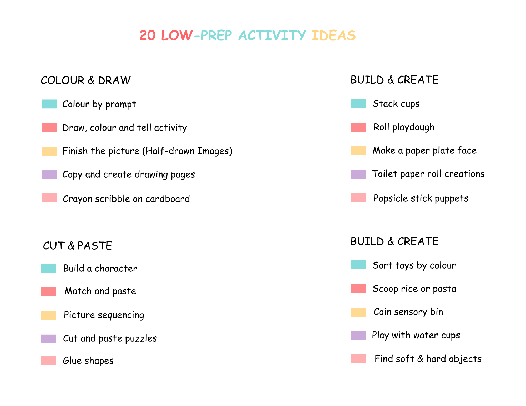 • One page with 20 low-prep play ideas you can choose from