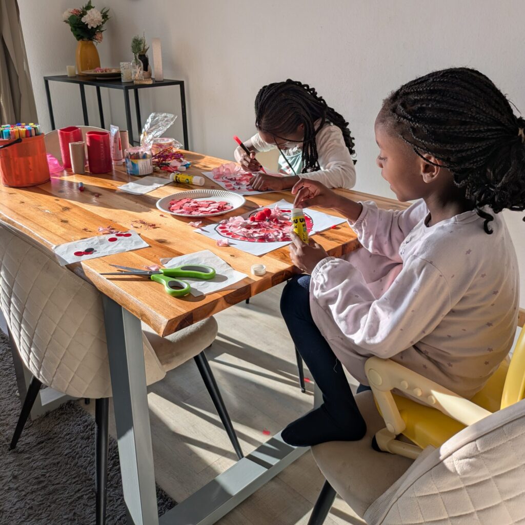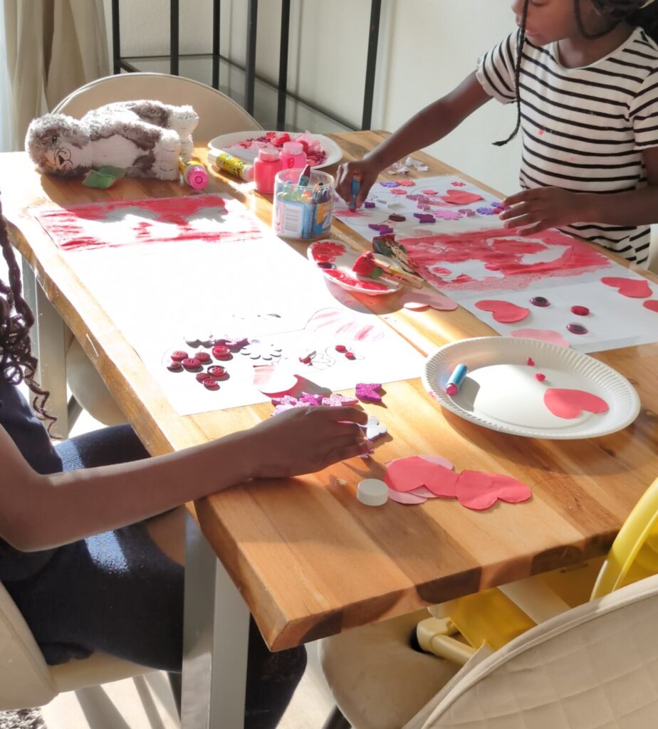 I caught myself doing this exact thing with my four-year-old recently. I had set up a Valentine’s craft by taping a few papers together and putting out loose materials for them to explore freely. They were completely into it, glueing, painting and all ……….. when I started hovering. I go, “You’re supposed to give the bear a face,” “Don’t put those stickers there, they’re for this space.” And then my four-year-old looked at me and said: “Mama, stop bothering me. Let me use my imagination.” I’d be lying if I said this didn’t stop me in my tracks, because I backed off immediately, and I was honestly relieved she didn’t lose interest, because she usually does the moment I hover too much.